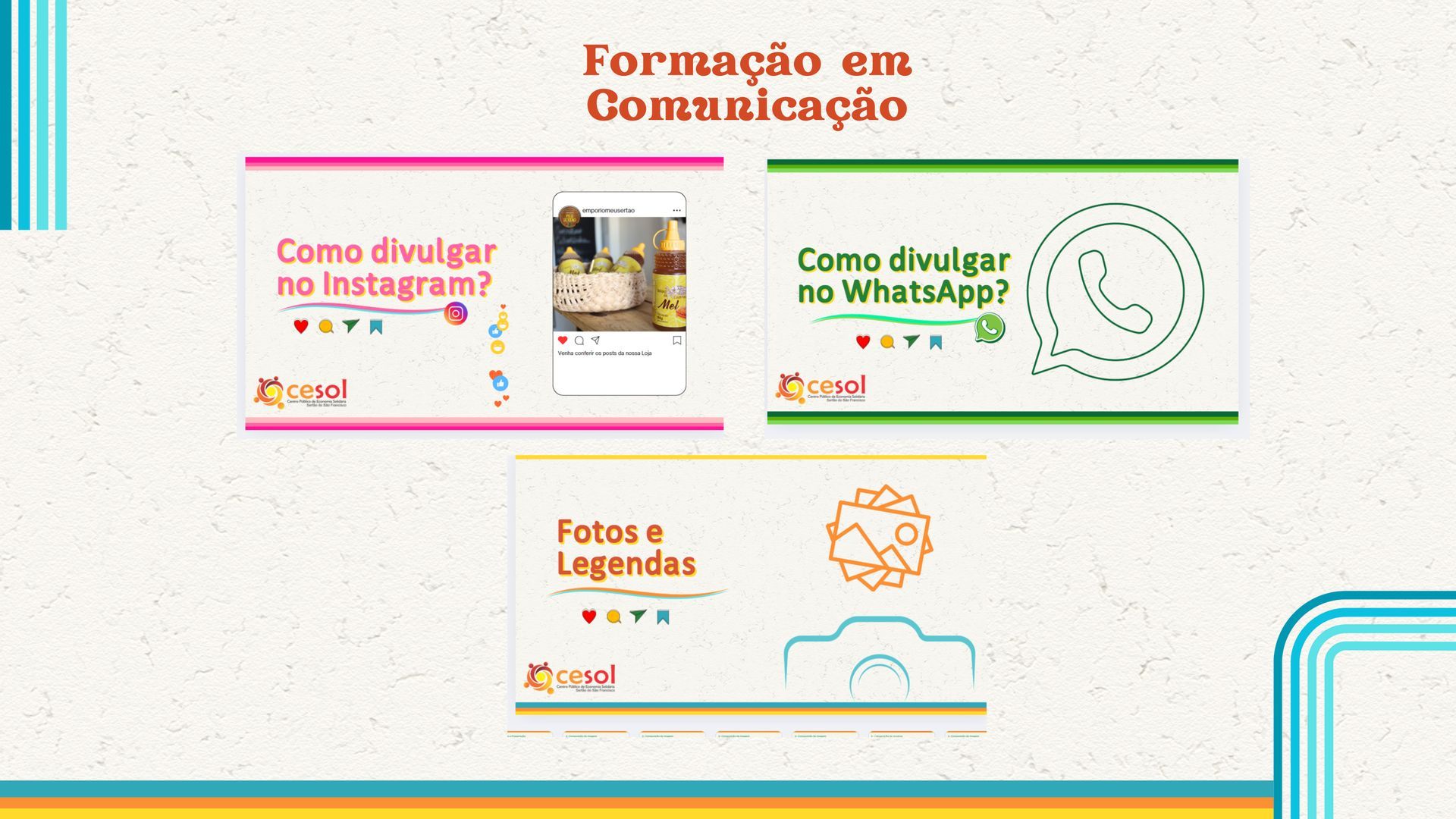 Com o objetivo de impulsionar a visibilidade e as vendas dos produtos da economia solidária, o Centro Público de Economia Solidária Sertão do São Francisco (Cesol-SSF) em parceria com a Associação de Apoio ao Desenvolvimento Sustentável e Solidário do Estado da Bahia – ADESBA - promoveram uma formação voltada à comunicação digital para os empreendimentos que acompanha. A iniciativa reuniu mais de 50 participantes dos dez municípios do território Sertão do São Francisco em uma jornada de aprendizado que abordou, de forma prática e sensível, o uso estratégico do Instagram, WhatsApp e outras ferramentas de divulgação.